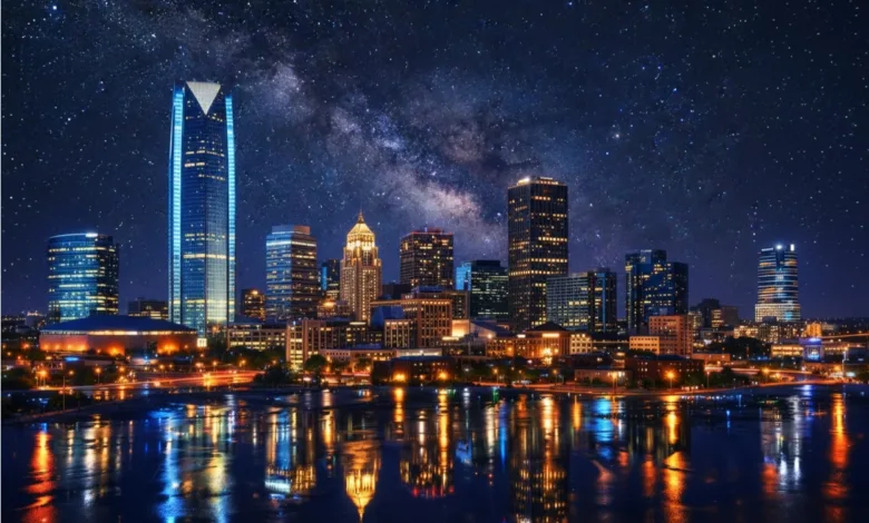 At 8:00 PM in Oklahoma City, the weather conditions feature a clear sky with a…