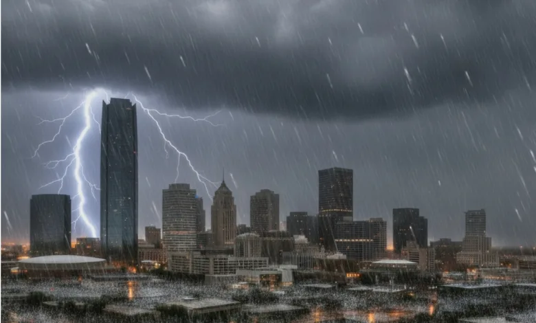 Oklahoma City is currently experiencing a temperature of 75.9°F with a wind speed of 13.2 mph. There has been no precipitation reported. The area is under a thunderstorm warning at this time.